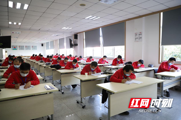 要想技术了得理论知识自然要过关,汽车发动机维修竞赛现场参赛队员正在奋笔疾书。