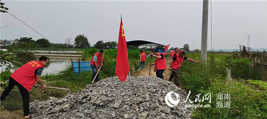 今年9月,群众谭常梗在微信群里反映组上一条基建道路年久失修,人车都已无法通过,约有 39户群众60多亩稻田分布在道路两旁,农业生产受到极大影响。冯义芳得知情况后,立即前往现场查看情况,并在河东党支部群、联户微信群里发起道路维修倡议, 20多个党员、群众报名出工出力,筹措维修款6000多元。次日上午,通过党员志愿者和村民们一天的努力,800多米长的基建道路终于恢复畅通。