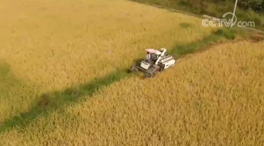 在祁阳县潘市镇建溪村,河南驻马店的农机手正驾驶着大型收割机收割水稻。这片稻田是当地种粮大户曹毛生耕种的,目前还有80多亩没有收割。