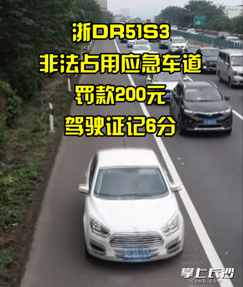 湖南高速交警部门对部分非法占用应急车道的车辆进行处罚和曝光。均为湖南高速警察 供图