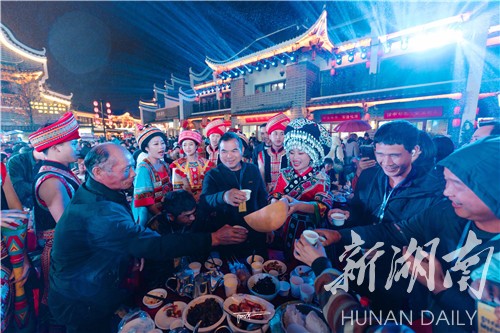 华声在线11月22日讯(湖南日报·华声在线记者 蒋茜 通讯员 潘爱民 何卓 王莉)花鼓戏,汉服走秀,歌舞表演......11月21日晚,永州零陵古城C区冉溪广场,“零陵夜宴·柳子长街宴”热闹开席,游客、摄影爱好者和当地居民近千人欢聚一堂,共享永州特色美食。