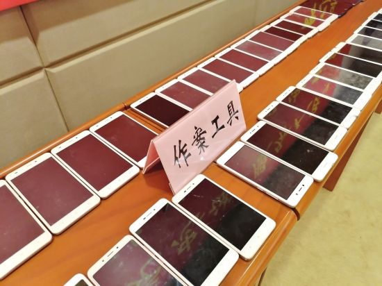11月19日,湖南省公安厅通报一起公安部督办特大盗销微信号犯罪专案侦破情况,现场展 示查获的作案工具。图/记者陈诗娴