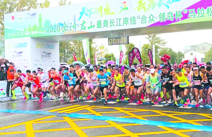 2020岳阳·君山最美长江岸线“合众·领岛杯”马拉松(半程)比赛现场。