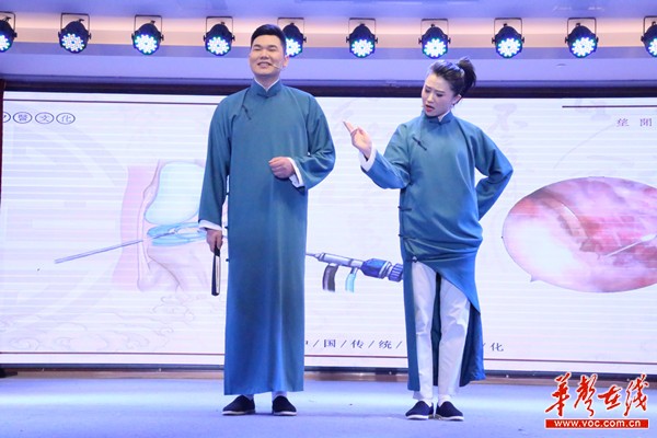 决赛现场,参赛团体及选手围绕药膳保健、艾灸养生、情志调养、运动康复、治未病、中医特色技术等老百姓最为关心的健康话题,凭借精妙的创意、通俗的语言、活泼的形式和精湛的演技,将“讳莫如深”的中医药知识转化为“接地气”的精彩节目,情景剧、相声、小品、歌舞、宣讲,配上风格各异的精美PPT和视频背景,令人耳目一新。