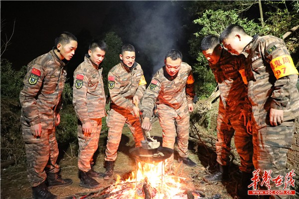但考验并未结束,导调组一声令下,队员们立即全副武装奔袭10公里至野外生存训练地。他们利用现有装备和器材按照选址挖灶、隐蔽生火、处理加工、掩埋清痕等步骤,将配发和寻找到的食材加工至可以安全食用的标准。