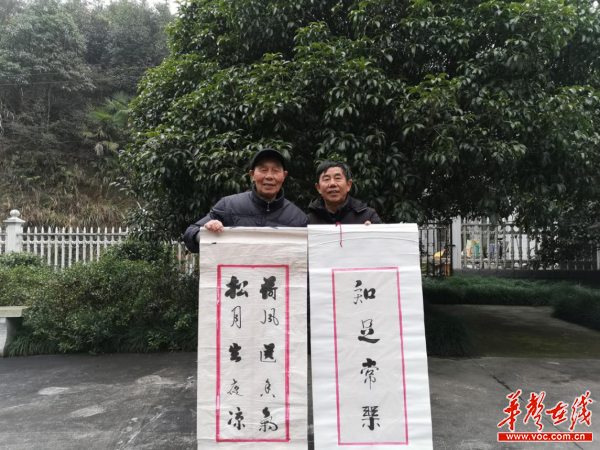 董国安和周克俭是志同道合的老朋友。平日里他们互赠自拟自写的对联,陶冶情趣。“数千年未绝辉煌文明之声于世界,新时代更见腾飞巨龙傲立在中华”……他们将对联张贴在大门两旁,提升了美丽庭院的生活品味。