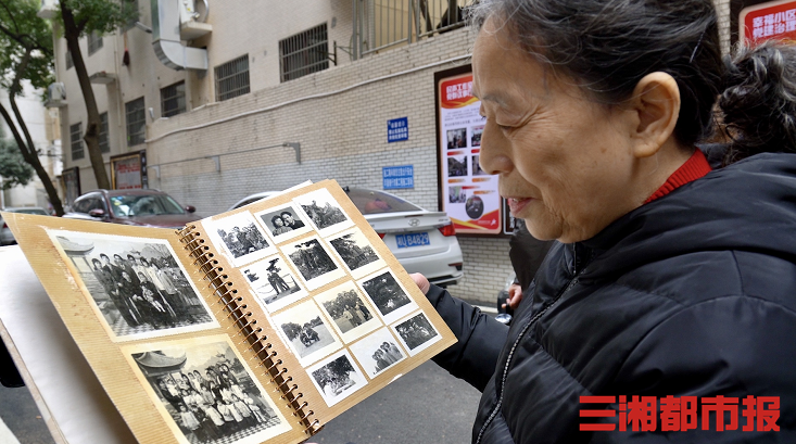 (在长沙市天心区青园街道井湾子社区电视机厂南院小区,居民郭娭毑翻开老相册,讲述湖南电视机厂以前的人与事。)