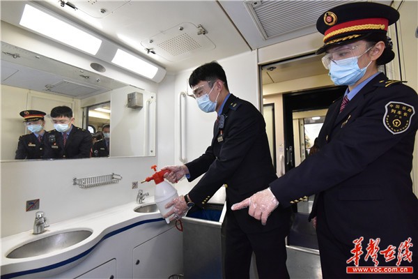 “列车出库前,疾控部门会对全列进行预防性消毒。列车运行中每4小时会对厕所、洗手池、门把手等重点部位不少于一次预防性消毒。同时,我们除始发、中途会进行一次全列测温外,到达终点站前一站,会再次组织对全列旅客进行测温。”长沙客运段Z2次“雷锋号”列车长曾莉的介绍给旅客吃了一颗“定心丸”。