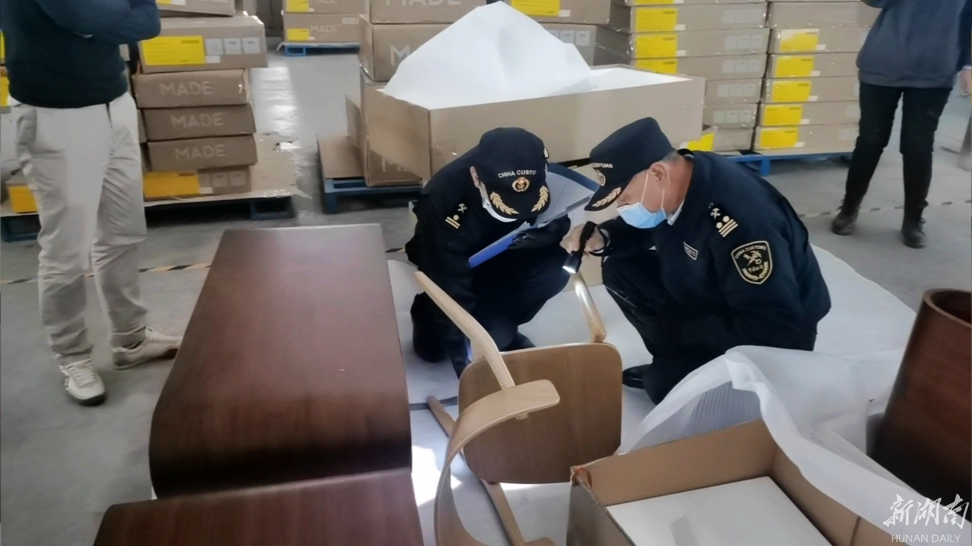 华声在线1月23日讯(湖南日报·华声在线记者 罗徽 通讯员 雷洪哲)“所有家具全部检验完毕,可以放行。”1月21日,在郴州市溢莱智能家居有限公司的生产车间, 268件餐椅、书架、餐边柜、茶几、电视柜等木质家具,经海关现场合格评定,即将出口欧洲。这是我省今年首批对欧出口的家具。