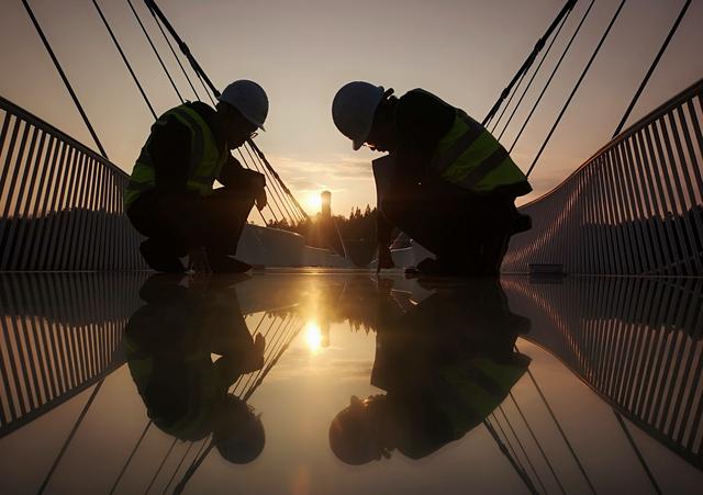 寒冬时节,为保障旅游服务安全,张家界大峡谷风景区加强了高山峡谷玻璃桥主缆索夹、桥梁焊缝等重点部位的检查管护力度,确保桥梁处于“健康”状态。 新华社发(吴勇兵 摄)