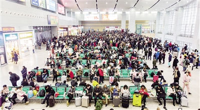 接近年关,高铁衡阳东站迎来大量出行旅客。
