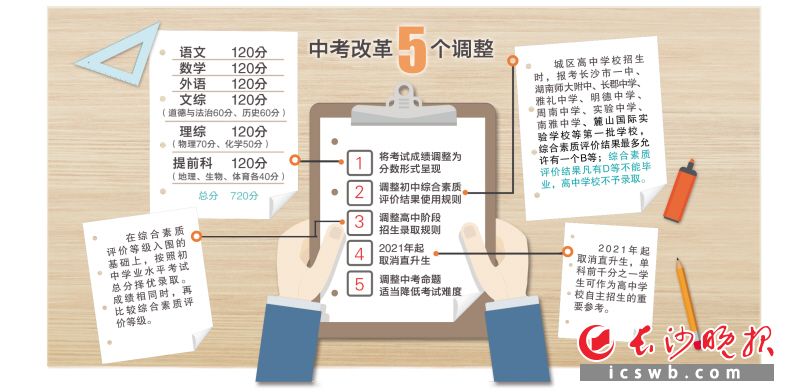 长沙中考改革制度落地,等级制改为分数制,2021年设立过渡期一年
