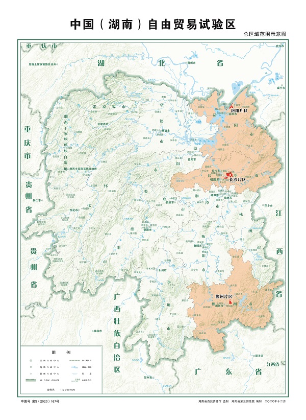 根据国家有关要求,经商务部、自然资源部审核,并经省政府同意,中国(湖南)自由贸易试验区四至范围和示意图正式对外公布。