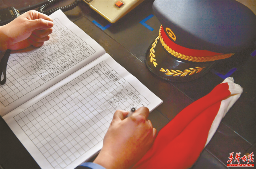 2月21日上午,周应平写道口行车日记。每一趟列车经过,值班人员都要进行详细记录。
