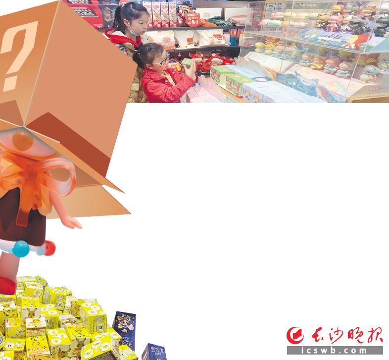在长沙某商场的一家潮玩店里,两名小朋友正仔细端详着手中的盲盒,舍不得放下。长沙晚报全媒体记者 范宏欢 摄