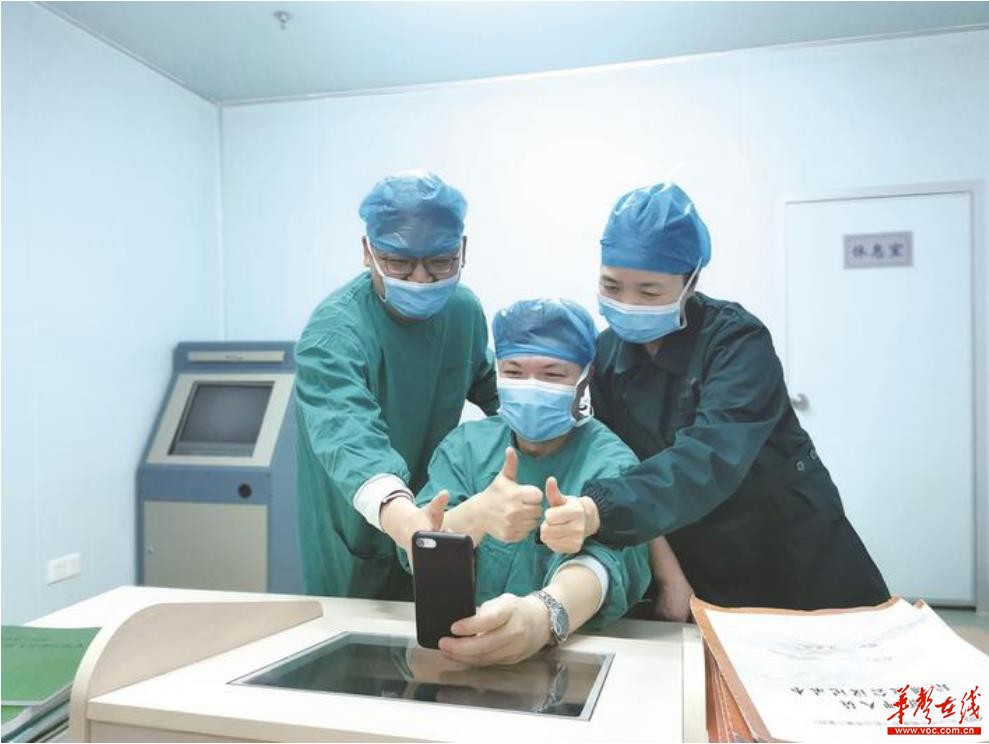 长沙市中医医院(长沙市第八医院)麻醉科同事与邹志鸿视频通话,互道新年祝福。陈盼 摄