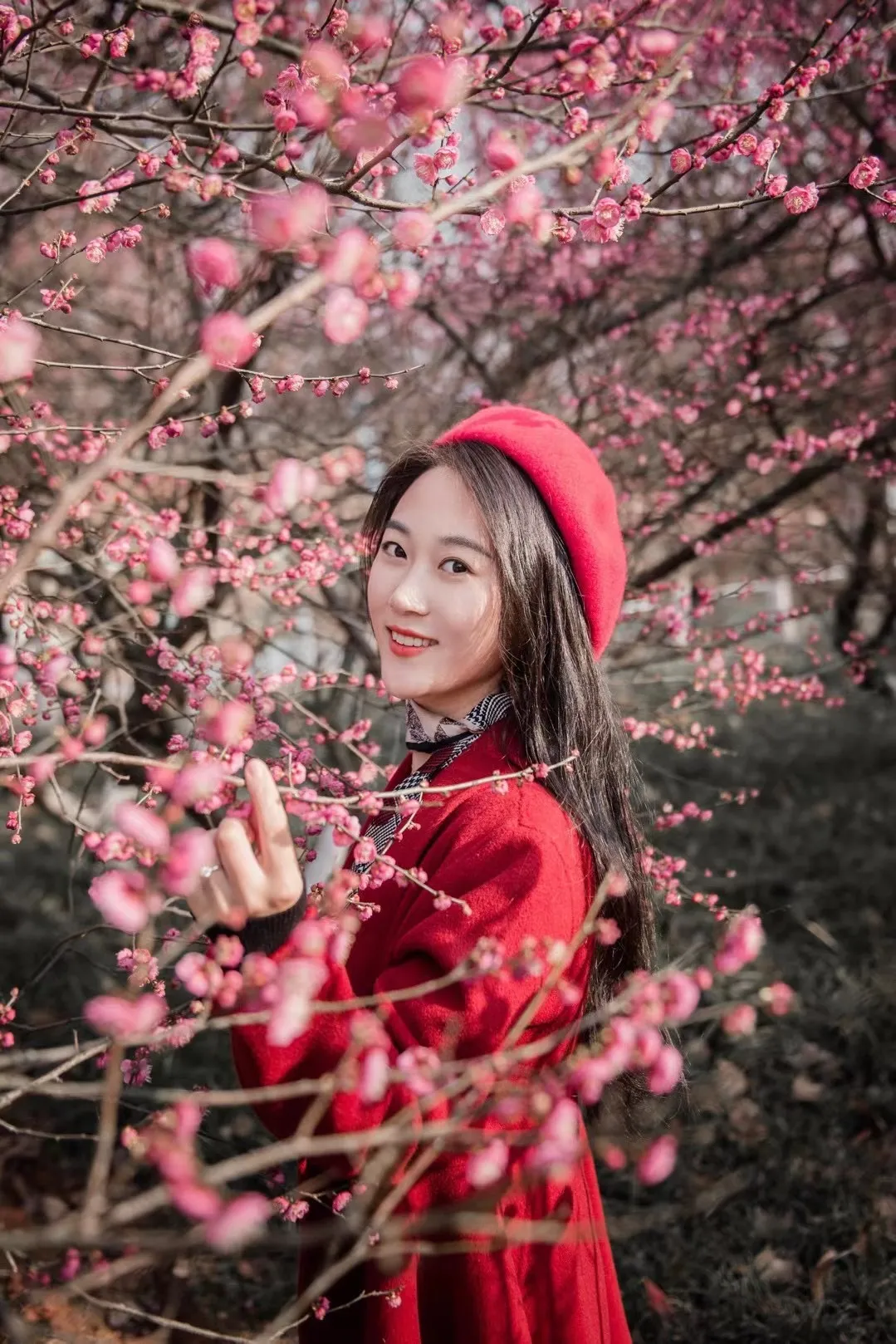 游客与梅花“合影”。网友袁目供图