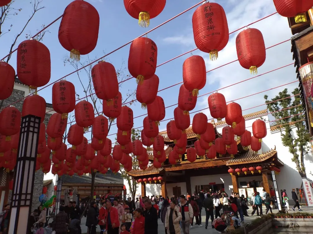 洋湖公园和洋湖水街内处处张灯结彩,一派喜庆祥和的氛围。
