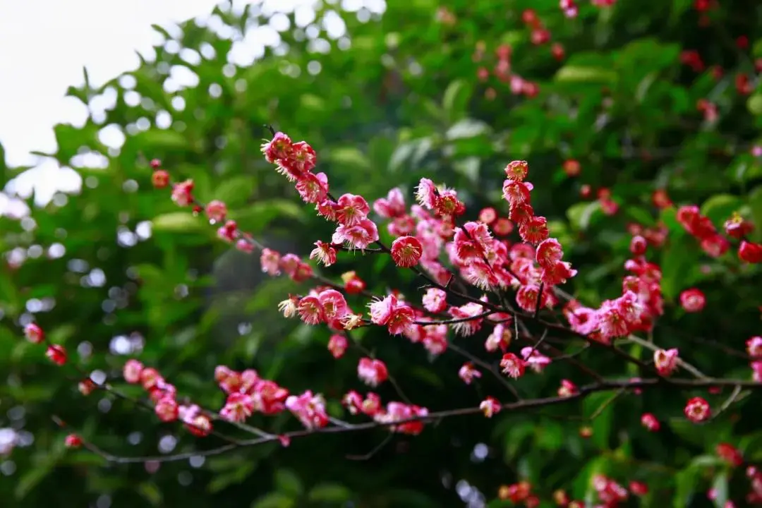 洋湖公园内梅花开得正艳。