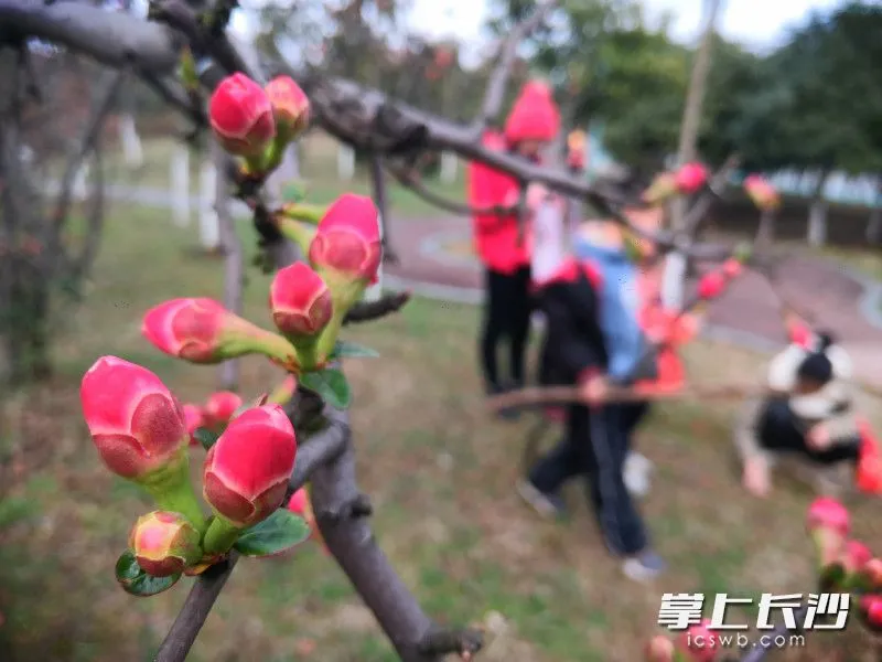 连日来,长沙气温回升天气晴朗,催得花儿朵朵开,烈士公园的花开也正当时。2月13日,记者在烈士公园看到,海棠花有的含苞待放,有的花开正艳,朵朵红花为牛年春节增添了喜庆气氛。