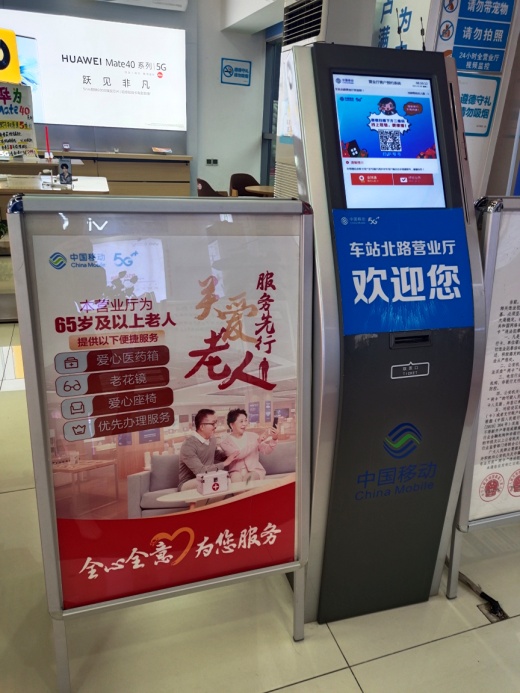 为全省65岁及以上老人提供10086客服热线直入人工服务、设置了优先办理通道和台席的营业厅向老年人优先办理业务,全省自营厅进门位置摆放爱心服务海报,为老人配置爱心座椅、老花镜,部分营业厅还为老人免费提供爱心轮椅服务。