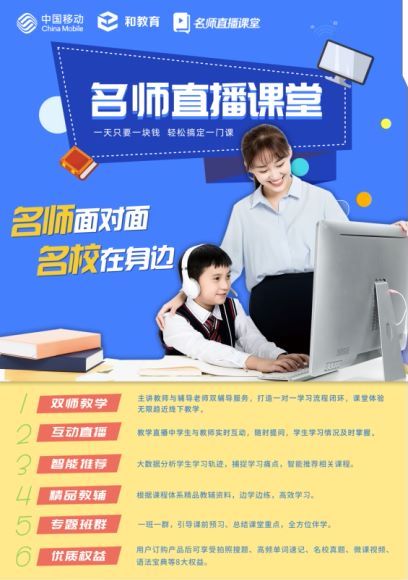 和教育提供名师直播课、学而思轻课等十大优质在线教育资源,以及网络大课堂、校园电视台等校园信息化应用服务,为疫情期间中小幼在线教育需求提供信息化保障。