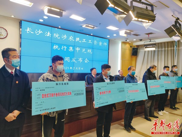 2月8日,长沙市中级人民法院召开集中执行兑现大会,集中兑现涉农民工工资案件执行款。三湘都市报·华声在线记者 杨昱 摄