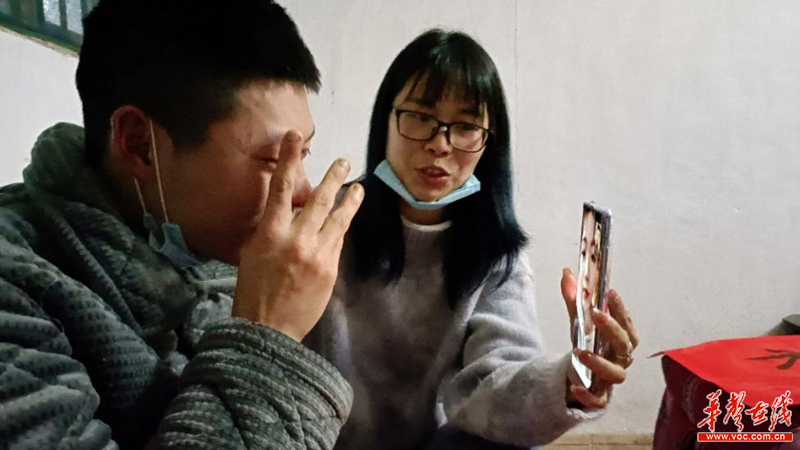 (收到礼物的杨一帆开心地和志愿者视频表示感谢。)