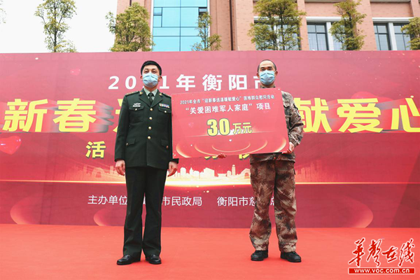 华声在线2月4日讯(通讯员 谭绪卫 梁铨显)春节将至,驻衡部队困难军人家庭温暖过冬、祥和过年,是衡阳警备区党委最大的牵挂。近日,衡阳警备区政治工作处协调衡阳市慈善总会将募捐到的30万元资金用于扶持36户困难军人家庭,为生活中有实际困难的军人家庭添一道“保障”。