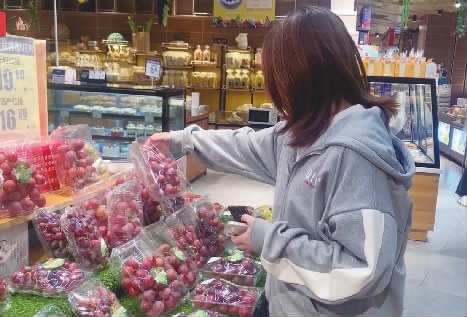 3月28日,顾客正在超市内挑选水果。