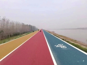 青山湖候鸟公园有着彩色的游步道。这里吸引了不少游客前来打卡。