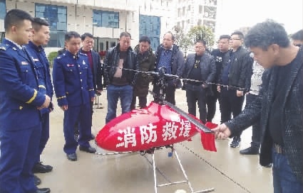 “数字鹰SK-62多旋翼无人机最大载荷为10公斤,配有十八倍光学摄像头,主要功能有报警喊话、精准抛投物资。”汤雄介绍,与传统的消防装备相比,这款无人机既可以执行高危险性的任务,又不需要装备生命保障系统,执行任务的成本更低,且监测精准度高。在发生火灾、地震、道路交通受限制等情况下,进行有效的先期控火和抢险救援,在洪涝救援中,还可以携带救生设备,进行定点抛投,快速营救遇险群众。
