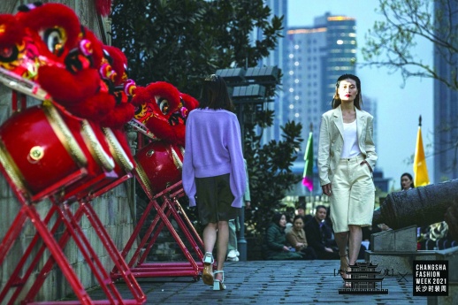 3月19日,2021年长沙时装周首秀在天心阁城楼举行。