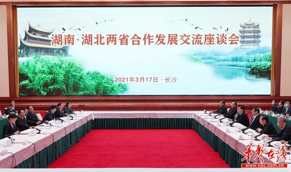 (3月17日至18日,湖北省党政代表团来湘考察。17日下午,两省在长沙举行合作发展交流座谈会。)