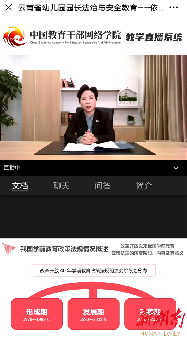 这群“粉丝”来自云南省,皆为公办幼儿园的园长,3月16日这天,陈雯在国家教育行政学院远程培训中心主办的“依法依规办园 提升保教质量”专题直播讲座中,对他们倾囊相授,效果不错,干货十足。