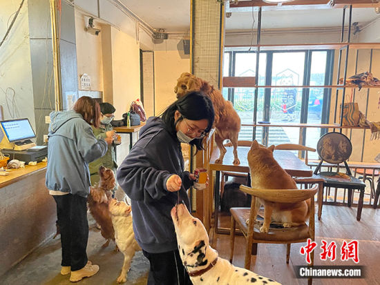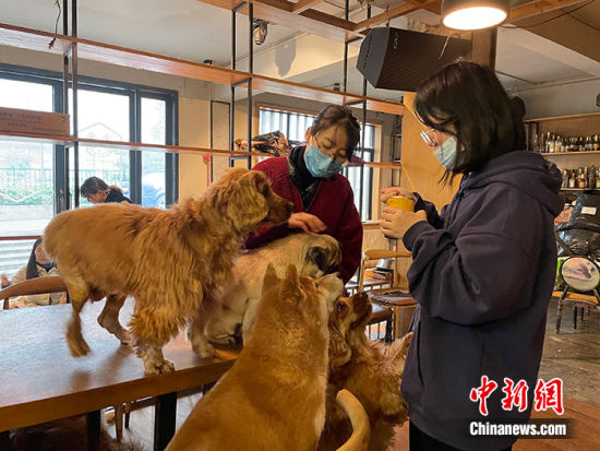 图为2月9日,长沙一家萌宠咖吸引女青年们。中新社发 关紫文 摄