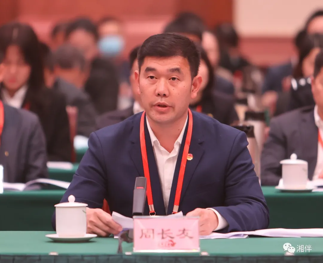 首先发言的青年代表是永州市冷水滩区牛角坝镇麦子园村党支部书记、主任周长友。