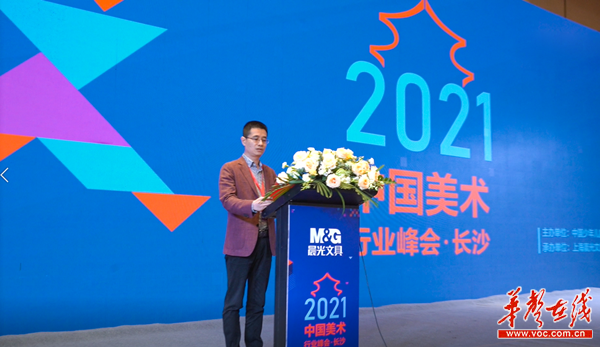 会上,晨光文具品牌部总监郭轶喆以《挑战赢未来,奋斗新时代》为题演讲。在他看来,美术教育作为中国教育体系的重要构成板块,贯穿于个人求学生涯,乃至生活、工作,“美育”所倡导的是兴趣教育、快乐教育。“而晨光所从事的工作不仅仅是文具产业,更是一份关乎无数孩子未来的美好事业。”