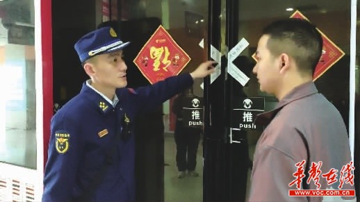 在核对完场所内的消防隐患后,执法人员要求经营者迅速清场,并在场所大门处贴上了封条。