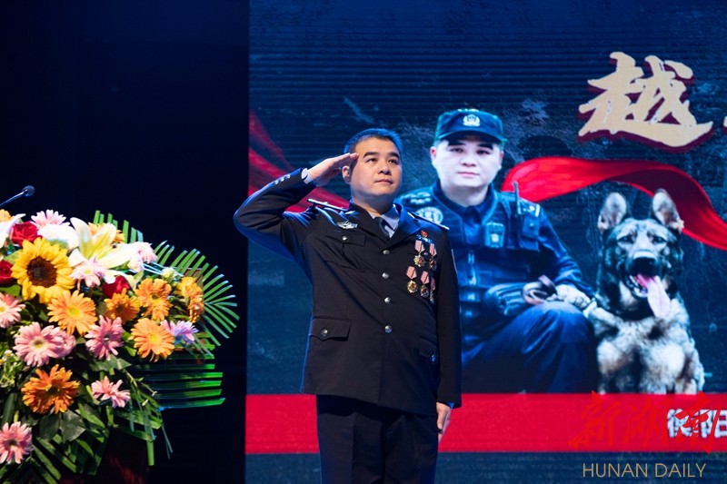 2014年春节,常宁市兰江乡村民刘某持枪杀死邻居后逃进大山。大年初一,我接到出警命令,立即带警犬赶赴常宁参与抓捕。经过两天两夜的搜捕,初三的凌晨,罪犯趁夜色溜回家中,潜伏守候的我果断指挥警犬向他冲去,准备将其一举抓获。凶残的歹徒负隅顽抗,向我开枪射击。随着一声巨响,我中弹倒地。这枚子弹让我身负重伤,在医院经过一年多的治疗才得以康复。
