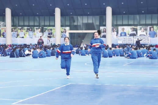身体是一辈子的,任何事情都不能以牺牲孩子身心健康为代价去获得。初中是孩子长身体的最佳时段,个子长高和分数上涨都重要,哪个更重要,我个人认为是个子长高。个子高点,孩子更有尊严,很多个子矮的孩子无论是读大学和就业都不开心。我们的目标是读完初中,男孩长到1.7米以上,女孩长到1.62米以上。为此,学校实施了 “445”身体健康战略:每周4节体育课,每个星期有4个下午的课外活动课,每天跑步1000米,每周5个大课间活动。