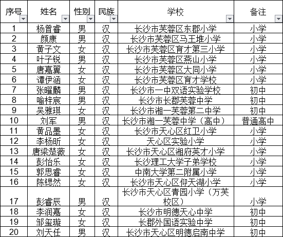 2020—2021年度普通高中(初中)省级优秀学生干部候选人
