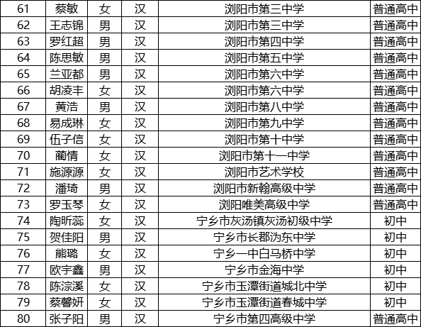 2020—2021年度普通高中(初中、小学)省级三好学生候选人