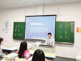 近日,长沙某职高,在讲台上的余欣欣。图/受访者提供