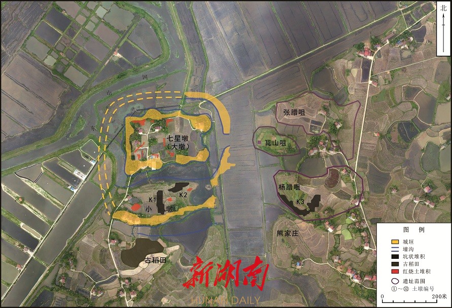 这座史前古城所在的七星墩遗址,位于岳阳华容东山镇。“七星墩遗址包含古城始建、兴盛和衰落各个阶段的遗存。”湖南华容七星墩遗址项目负责人、湖南省文物考古研究所馆员王良智说,从七星墩古城的兴衰,可以窥见长江中游史前古城文明、早期复杂社会的兴起和衰落。