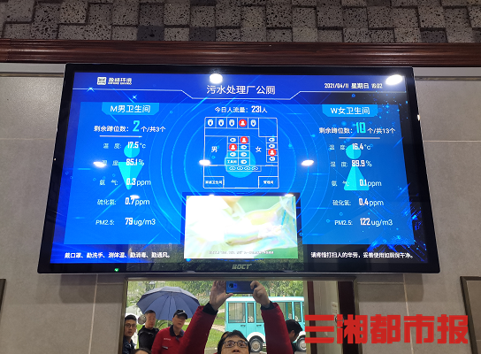 “目前景区内16个游客厕所,包括办公区的厕所都已联网。”橘子洲景区工作人员介绍,去年起,景区微信公众号就为游客推出了“找厕所”的功能,今年3月起又陆续在景区显眼处设置了“微信扫一扫,就近厕所早知道”的温馨提示牌,贴了二维码,还在厕所外安装了智慧显示屏,可实时显示厕所内的可用蹲位数等信息,“4月份起,智慧厕所系统正式上线。”