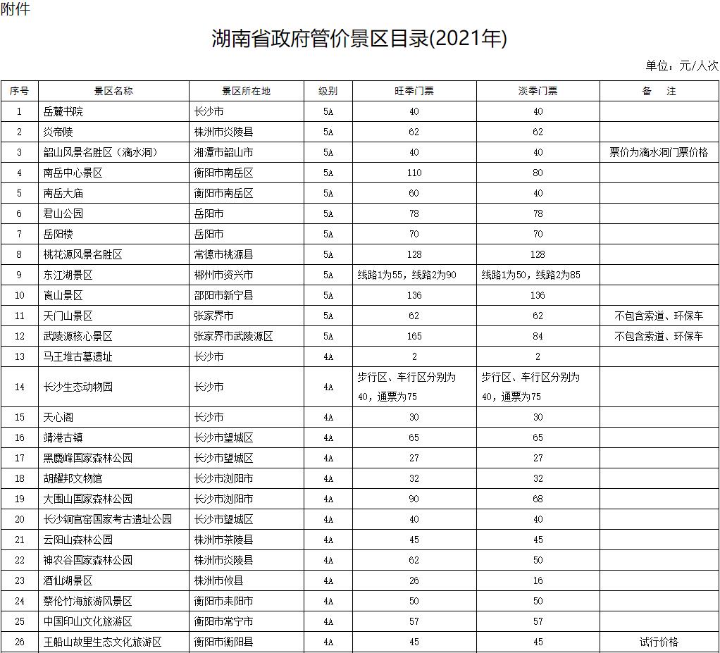 近日,省发改委对全省利用公共资源建设的政府管价景区进行了清理,制定了《湖南省政府管价景区目录(2021年)》(简称《目录》),全省191个景区门票价格新鲜出炉。