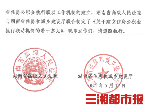 华声在线5月26日讯(三湘都市报·华声在线记者 虢灿 卜岚 通讯员 陶琛)被执行人的公积金能不能被法院执行?丈夫成为失信执行人,妻子名下公积金受不受影响?近日,省高级人民法院与省住房和城乡建设厅联合印发《关于建立住房公积金执行联动机制的若干意见》,对执行案件中联动查询、冻结、扣划住房公积金的相关条件和具体程序进行了详细规定。