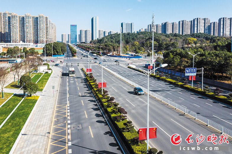 行驶在金星路上,道路平坦顺畅,两侧时令鲜花盛开,美不胜收。据了解,金星路(望城段)经过综合提质改造后,道路两侧辅道各拓宽2米,绿化率提高15%,从过去的交通“堵点”变身城市“亮点”。