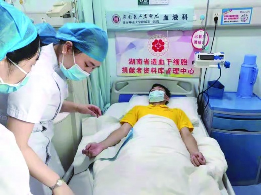 (医护人员在护理捐献造血干细胞悬液的刘佳龙。)